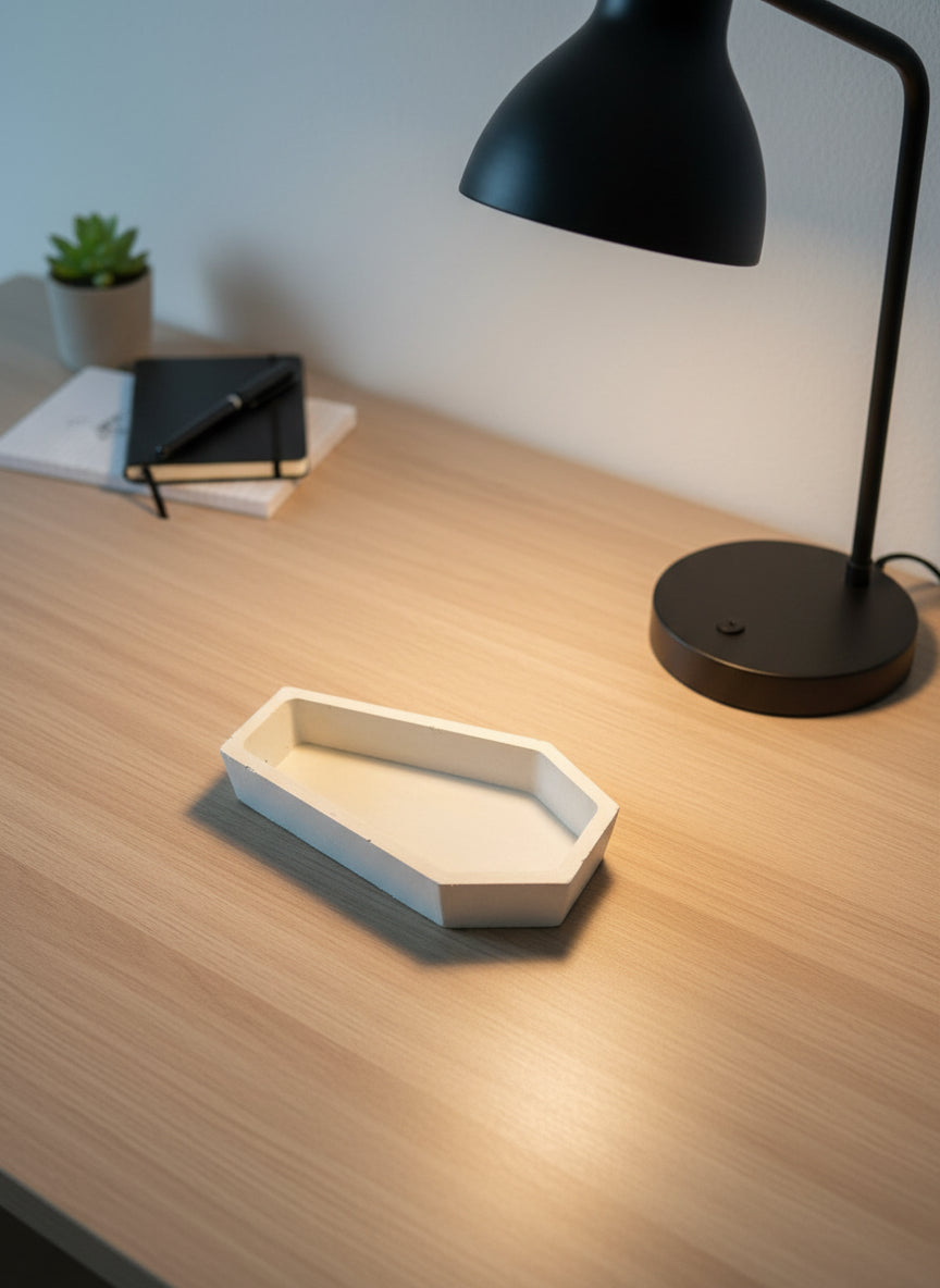 This unique coffin shaped container can be used for candles or as storage or just as a focal addition to your space.