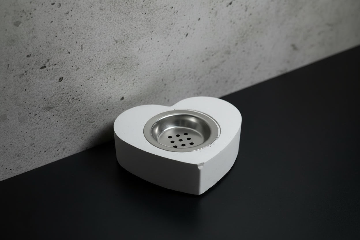 Thoughtfully designed as a two-piece set, this heart incense burner features a solid heart-shaped base paired with a matching heart vessel and a removable metal insert. Together, the layered design creates a sculptural, grounded piece that feels intentional from every angle.